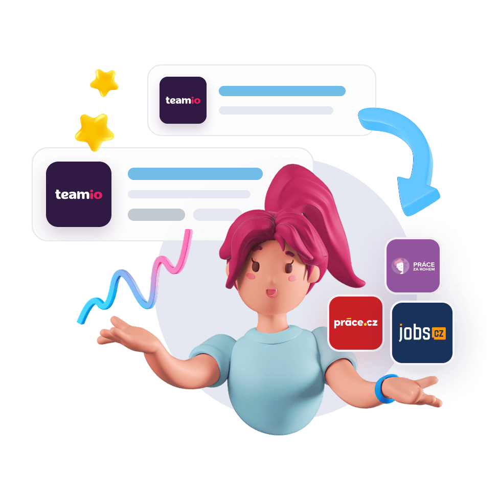 Teamio jsme vytvořili proto, abychom vám nabídli jednotný a jednoduchý způsob, jak inzerovat na Prace.cz, Jobs.cz a dalších pracovních portálech